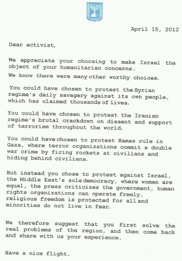 Here’s a letter that the BBC News department might like to read before considering their Middle-East coverage…