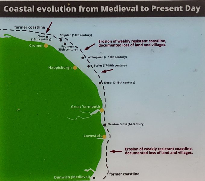 Map of that Norfolk coast showing the sealine was miles different 500 years ago.