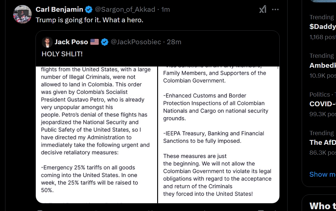 Trump retaliatory measures after Colombia blocks deportation flights from U.S.